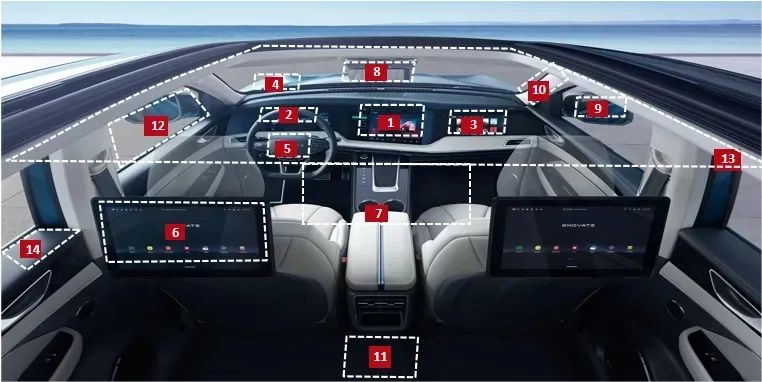 有相关机构预测,未来1-2年,主机厂单车平均屏幕搭载数量或将达到7个,“液晶仪表+中控屏+抬头显示屏(HUD)”将成标配,副驾娱乐屏、流媒体后视镜、电子外后视镜等将成为主要选配产品。